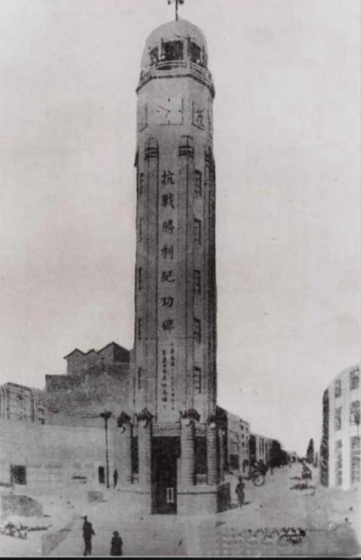 抗战胜利后,国民政府在“精神堡垒”原址上修建“抗战胜利纪功碑”,记全国军民的浴血奋战之功。1946年10月31日,“精神堡垒”原址弹坑新纪念碑奠基。12月,新纪念碑正式动工,改为八角形柱体盔顶钢筋混凝土结构。1947年8月纪念碑主体完工,同年10月10日竣工,碑身刻“抗战胜利纪功碑”,时称“纪功碑”,是中国唯一一座纪念中华民族抗日战争胜利的国家纪念碑。
