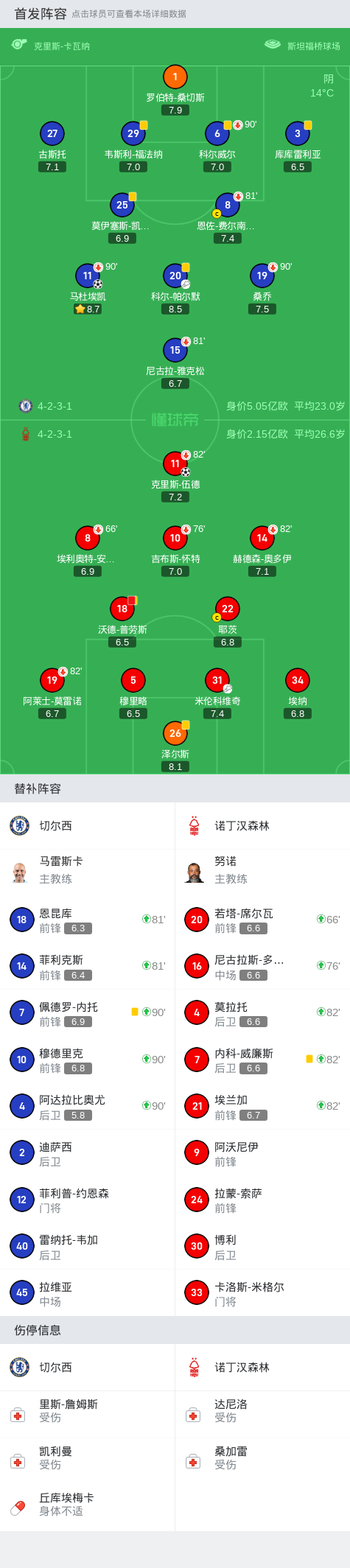 剑南春|切尔西1-1诺丁汉森林,马杜埃凯破门,伍德建功