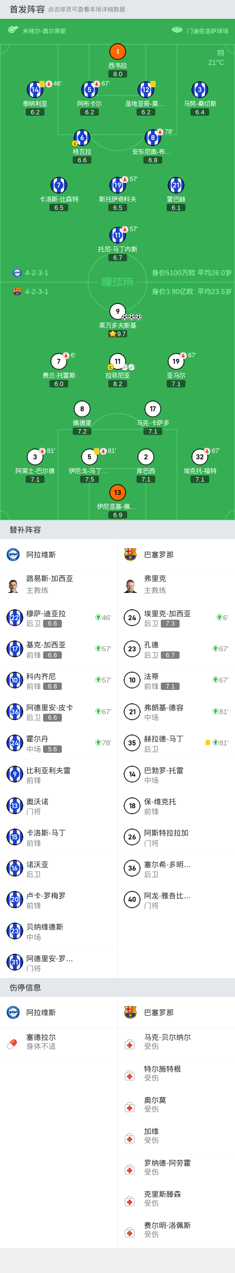 剑南春|巴萨3-0阿拉维斯,莱万半场戴帽,费兰开场伤退