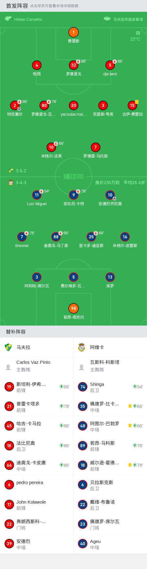 第84分钟,马夫拉球员米格尔-法莱将点球罚丢。