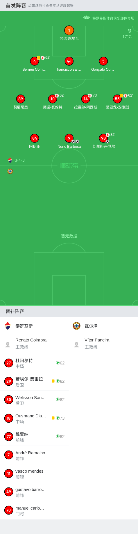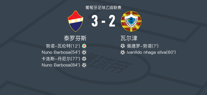 泰罗芬斯3-2逆转瓦尔津,Nuno Barbosa两球,卡洛斯-丹尼尔建功