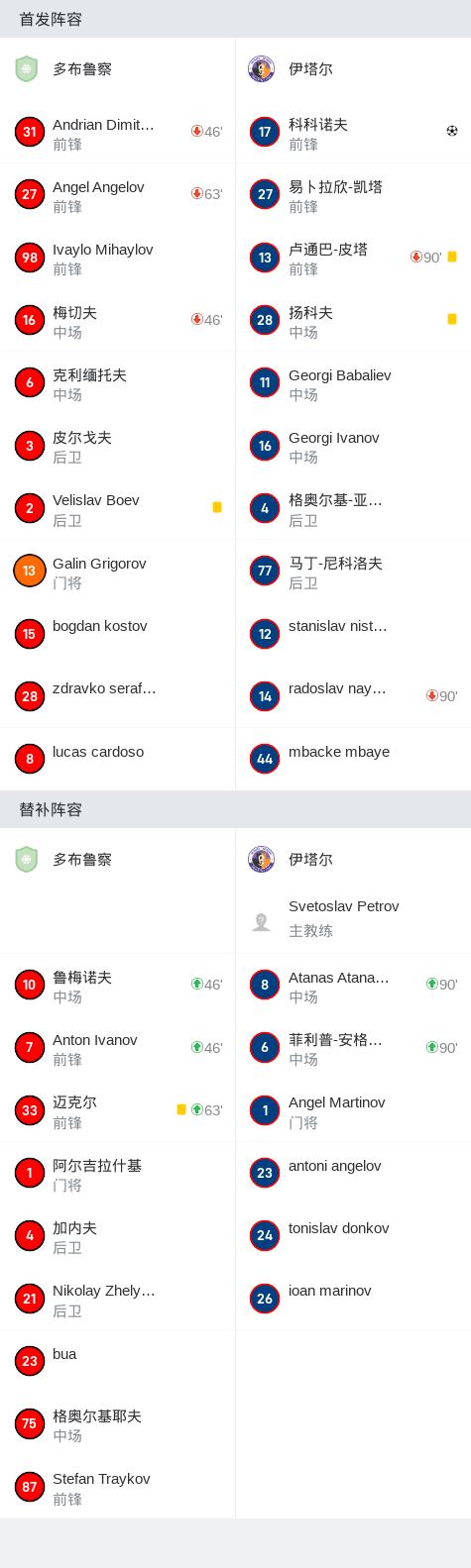 伊塔尔1-0多布鲁扎1919取保乙3连胜,科科诺夫一剑封喉战报bot @懂球帝2024-10-07 22:55在保加利亚足球乙级联赛第12轮的较量中,多布鲁察坐镇主场迎战伊塔尔。比赛中,伊塔尔的科科诺夫表现出色,为球队打入制胜一球。最终,伊塔尔凭借这一进球,以1比0小胜多布鲁察,成功带走三分。点击查看本场比赛详细数据>>精彩瞬间第11分钟,伊塔尔球员科科诺夫打入一球。 球队阵容 技术统计 展开更多