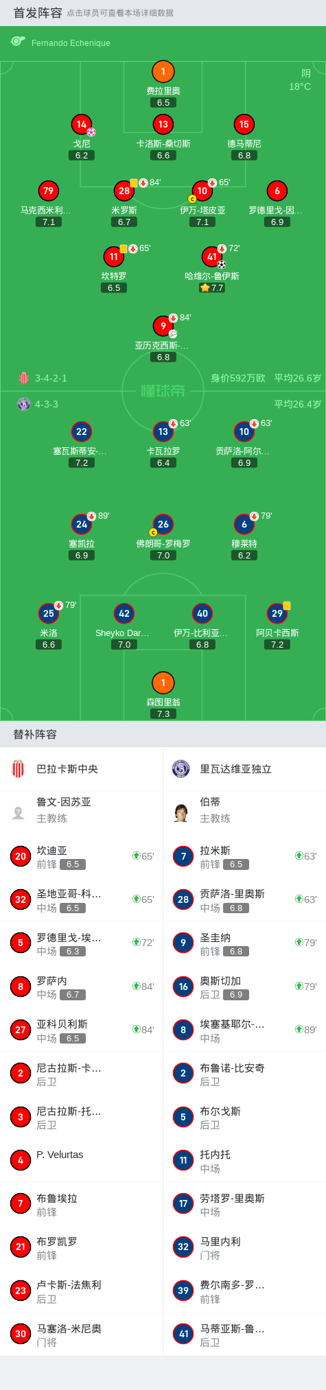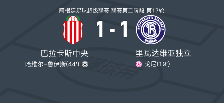 巴拉卡斯中央1-1里瓦达维亚独立,哈维尔-鲁伊斯建功