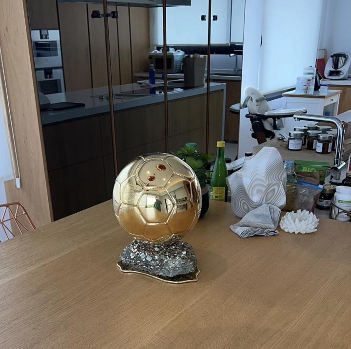 吉达联合前锋本泽马更新了社交媒体,他晒出了自己当年获得的金球奖的照片。