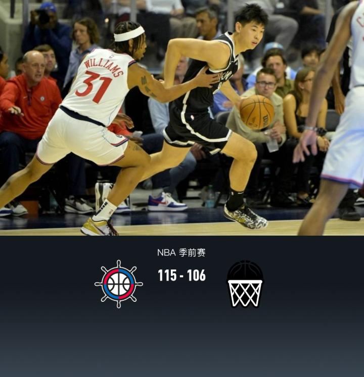 北京时间10月9日,NBA季前赛布鲁克林篮网对阵洛杉矶快船。本场比赛中国球员崔永熙代表篮网队首次出战季前赛,在三、四节末端登场出战8分33秒运动战2中0罚球2中1,拿到1分2板1失误2犯规,最终快船115-106篮网。
