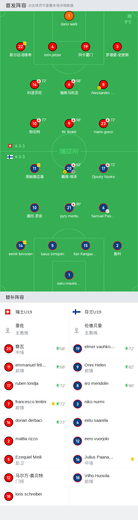 芬兰U19 1-0瑞士U19,戴维-埃泽制胜球