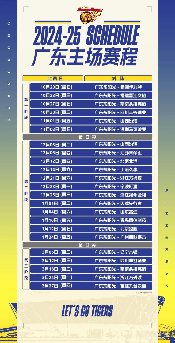 24-25赛季23场主场赛程