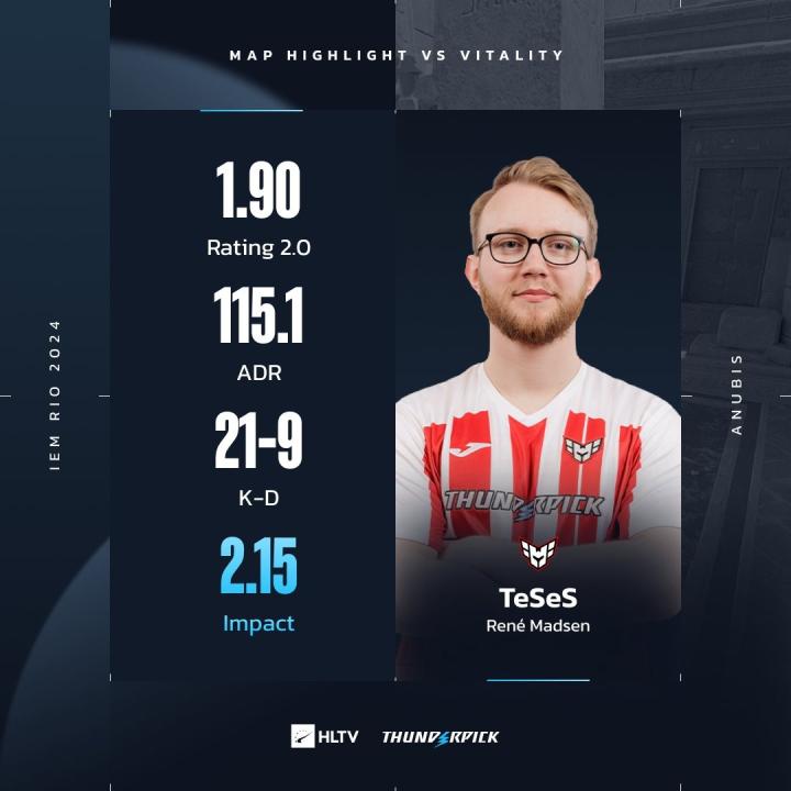 你也想去A队啦?“龙哥”Teses表现神勇,在图二中打出1.9恐怖rating。