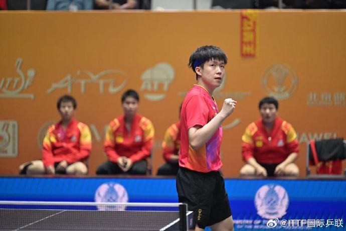 第一盘:王楚钦以11-9、11-5、11-6直落三局战胜19岁中国台北小将高承睿,为中国男乒先拿一分。
