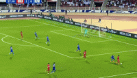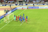 第25分钟,阿曼角球直接旋向球门,皮球险些入网