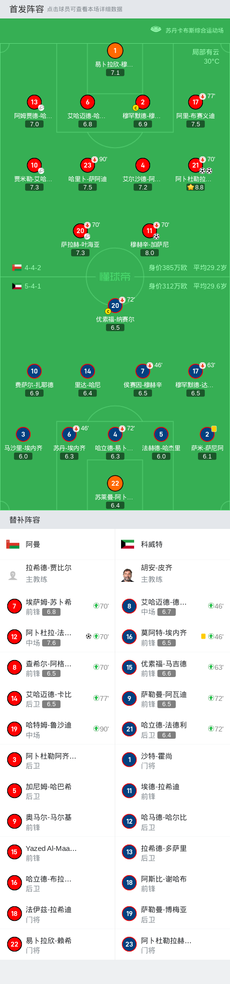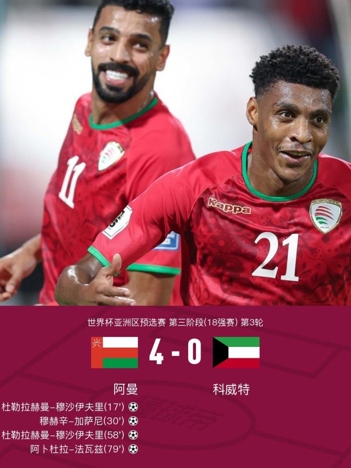 阿曼4-0科威特迎18强赛首胜,穆沙伊夫里双响,加萨尼建功