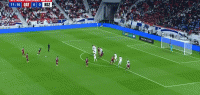 第12分钟,阿克拉姆-阿菲夫任意球攻门,皮球稍稍偏出