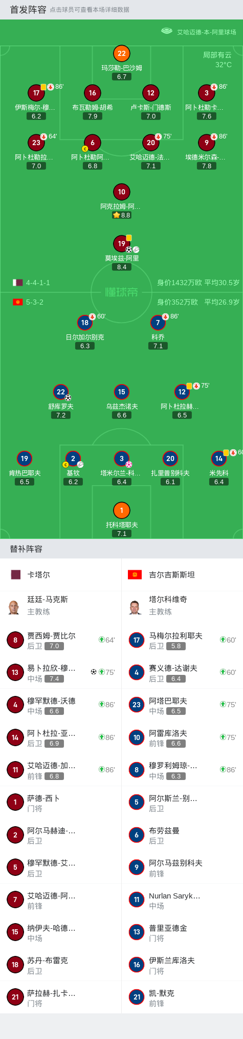 卡塔尔3-1吉尔吉斯斯坦,莫埃兹传射,科祖巴耶夫自摆乌龙