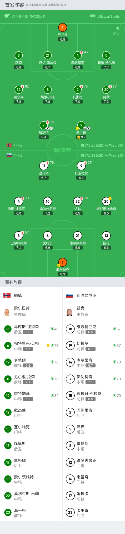 在欧洲国家联赛B级联赛的较量中,挪威对阵斯洛文尼亚。上半场,努萨射门被扑,哈兰德补射破门。下半场,瑟洛特帮助挪威扩大领先优势。随后,瑟洛特助攻,哈兰德再下一城。全场比赛结束,挪威3-0战胜斯洛文尼亚。