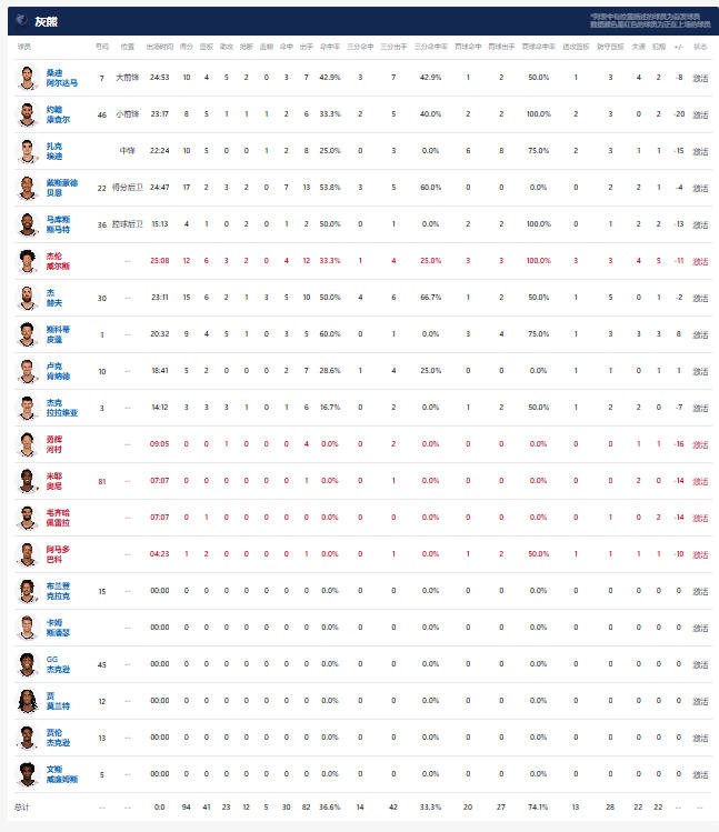 球员全场数据