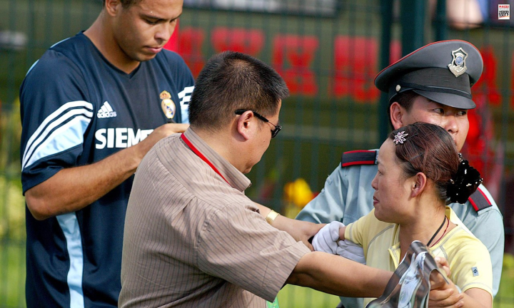 皇马在红塔基地训练的一周时间,全国各地球迷蜂拥而至,不少人买下高价机票,订下高价酒店,只为来到昆明窥探巨星。很多球迷为了一睹小贝的绝世美颜,甚至躲在了其别墅区之外的草丛之中,为避免意外,皇马特意聘请了多位专业保镖24小时守在周围。