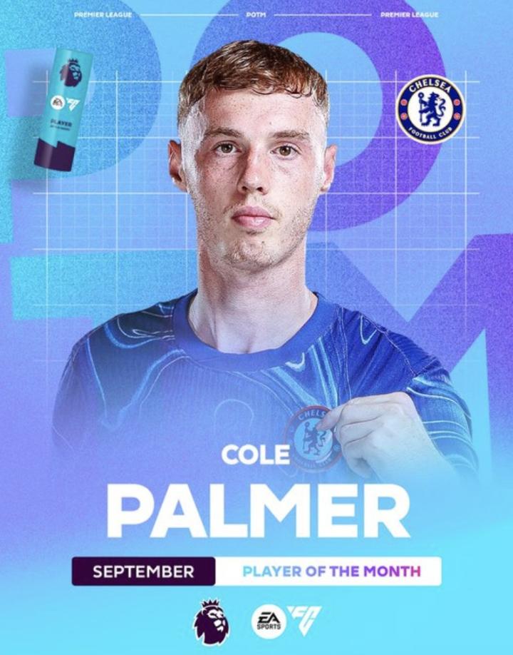 4场贡献5球1助,英超官方:帕尔默当选英超9月最佳球员