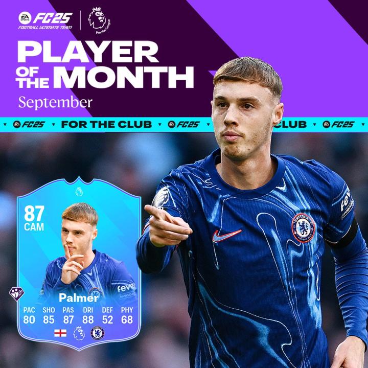 帕尔默获得了2024年4月和2024年9月的英超官方月度最佳球员奖。