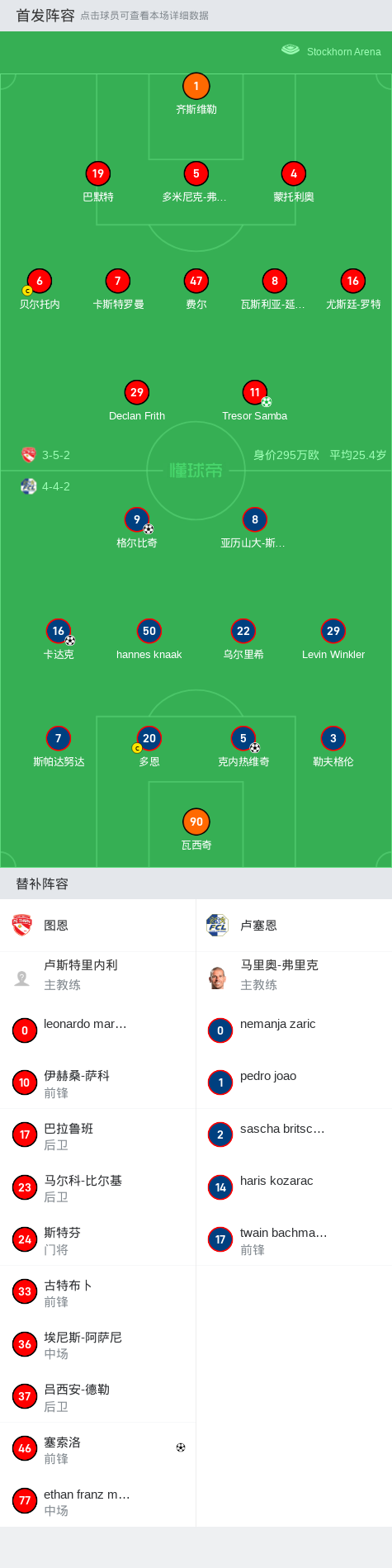 卢塞恩3-2逆转图恩,格尔比奇、克内热维奇建功