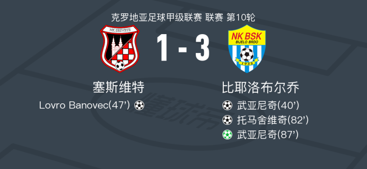 比耶洛布尔乔3-1塞斯维特,武亚尼奇梅开二度,托马舍维奇建功