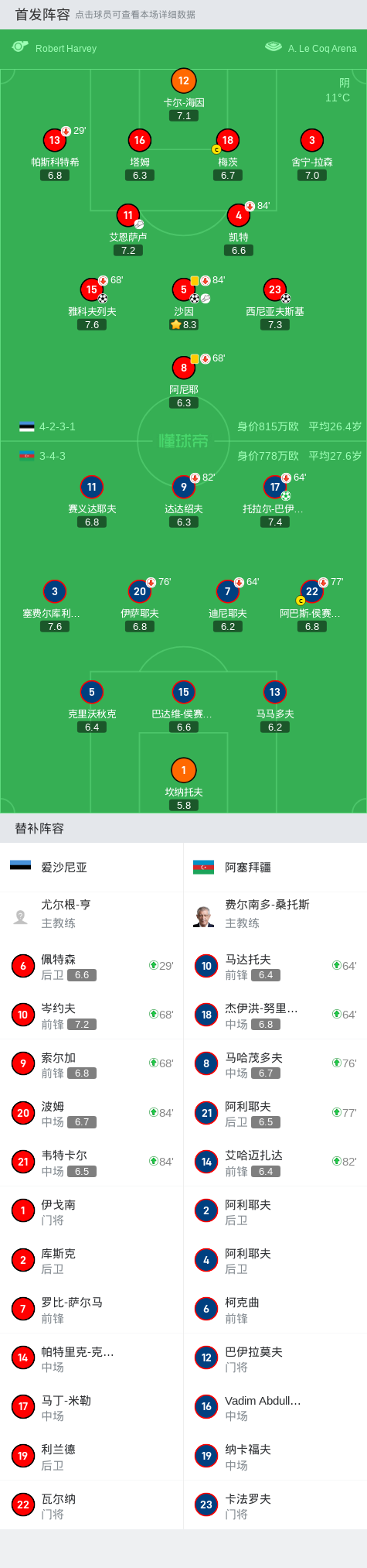 爱沙尼亚3-1阿塞拜疆,沙因1射1传,西尼亚夫斯基破门