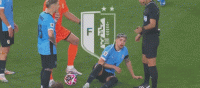 第28分钟,巴尔韦德被对方打到面部后出现受伤状况,接受队医治疗