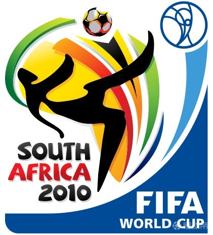世界杯第一次来到了神秘的非洲大陆。依然是足球和倒钩,这届会徽上的五种色彩源自于南非的国旗色。黑色踢球者的形象也非常像两只在空中翱翔的雄鹰。