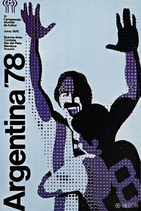 阿根廷人的海报别具一格,无数大小不一的网点加上背景线条图案,组成了一幅身披蓝白间条衫球员相拥庆祝的剪影,蓝、白、黑也是东道主阿根廷的主场球衣颜色。