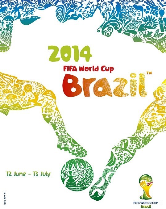 这届世界杯的海报颇有些中国剪纸画的风格——两名球员抢球的动作恰好构成了一幅巴西国家的版图,那些剪纸般的图案则代表着巴西各具特色的地方文化,创意十足。