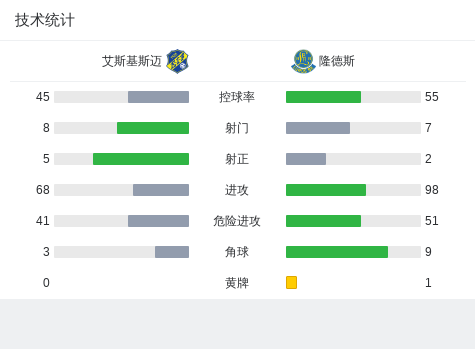 第49分钟,隆德斯球员利努斯-奥尔松打入一球。