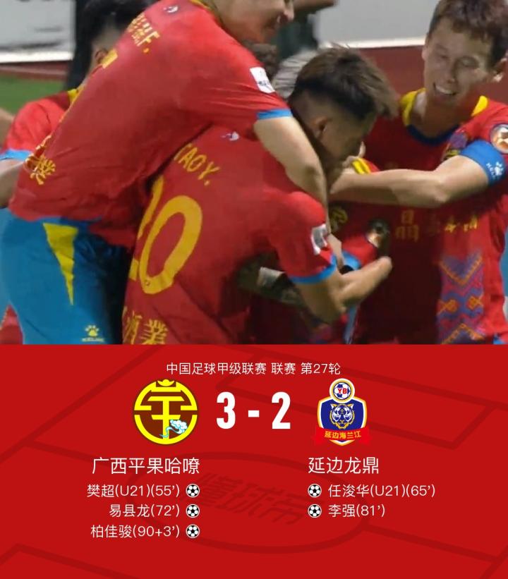 广西平果哈嘹3-2延边龙鼎终结5连平,柏佳骏补时绝杀