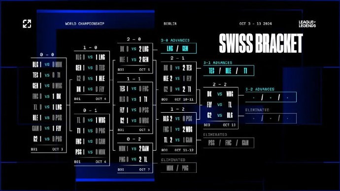S14瑞士轮第五轮抽签:LPL没有内战,对手都很强观赏性拉满buddj @懂球帝2024-10-13 01:18北京时间10月13日凌晨,2024英雄联盟全球总决赛瑞士轮第四轮的比赛已经全部结束,接下来是瑞士轮第五轮比赛抽签结果出炉。LPL无内战但对手都很强,WBG对战DK,BLG对战G2。具体结果如下:10月13日瑞士轮第五轮2-2对阵(BO3):DK vs WBGFLY vs TLBLG vs G2队伍一共有BLG、DK、FLY、G2、WBG、TL,其中WBG回避TL、G2,FLY回避DK。展开更多
