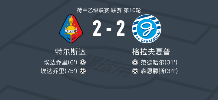 特尔斯达2-2格拉夫夏普遭荷乙4连平,埃达乔里破门,埃达乔里扳平