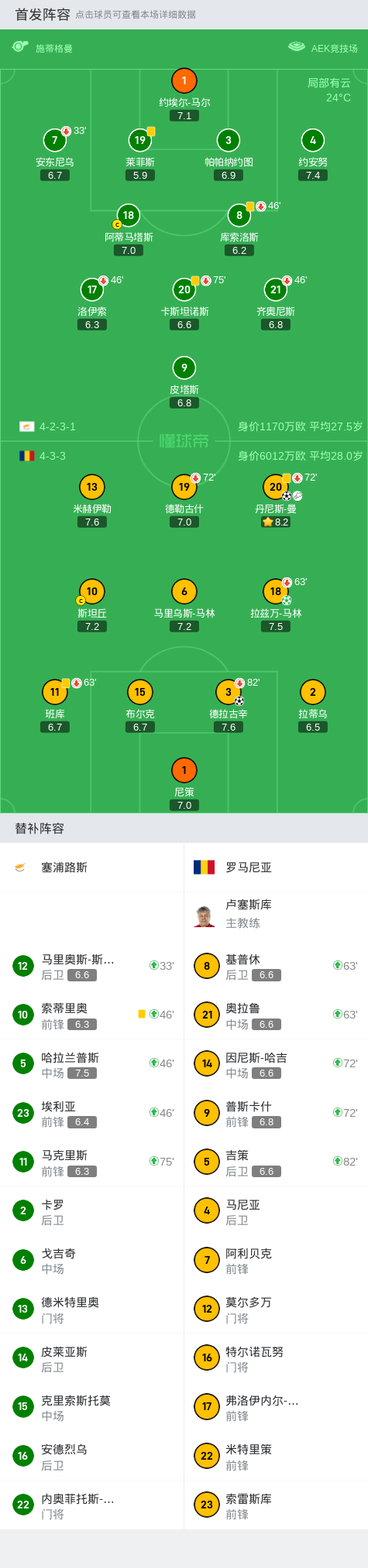 塞浦路斯0-3罗马尼亚,丹尼斯-曼传射,德拉古辛、马林建功