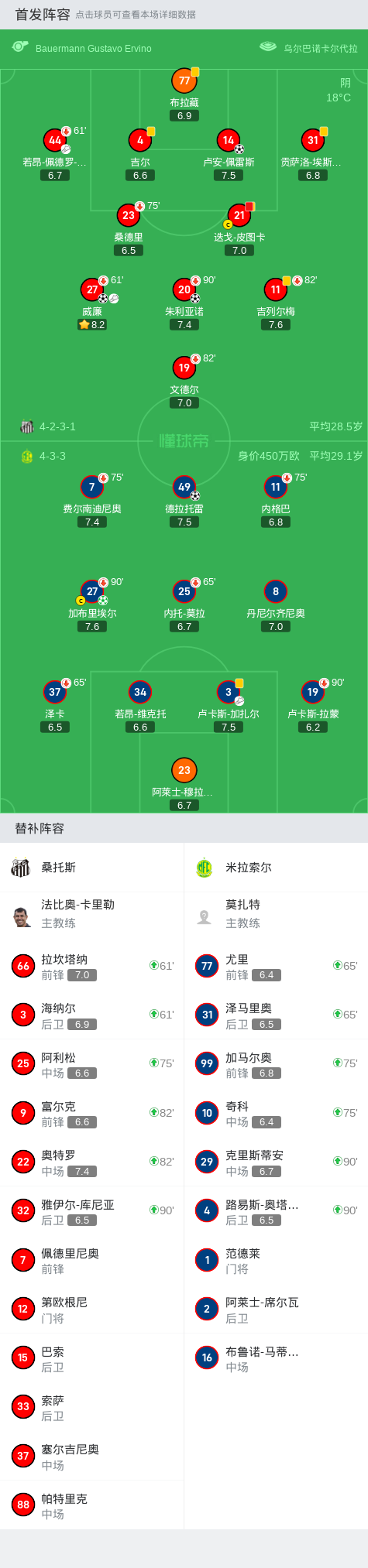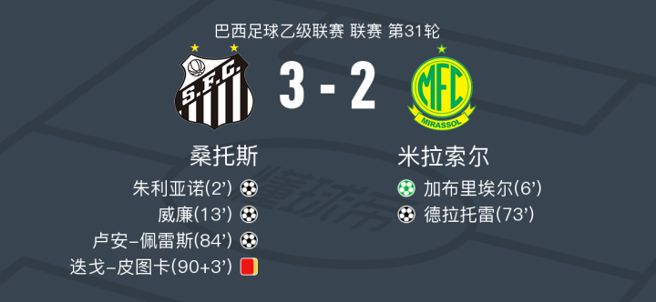 桑托斯3-2米拉索尔,卢安-佩雷斯、威廉破门