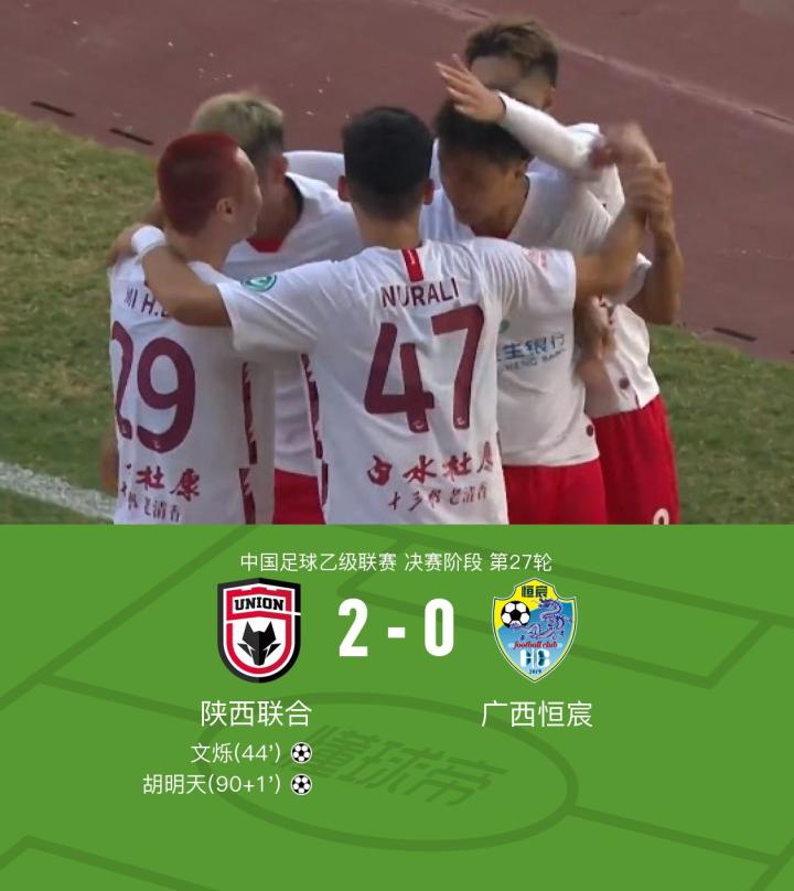 陕西联合2-0广西恒宸,末轮战广州豹取胜即冲甲,胡明天破门