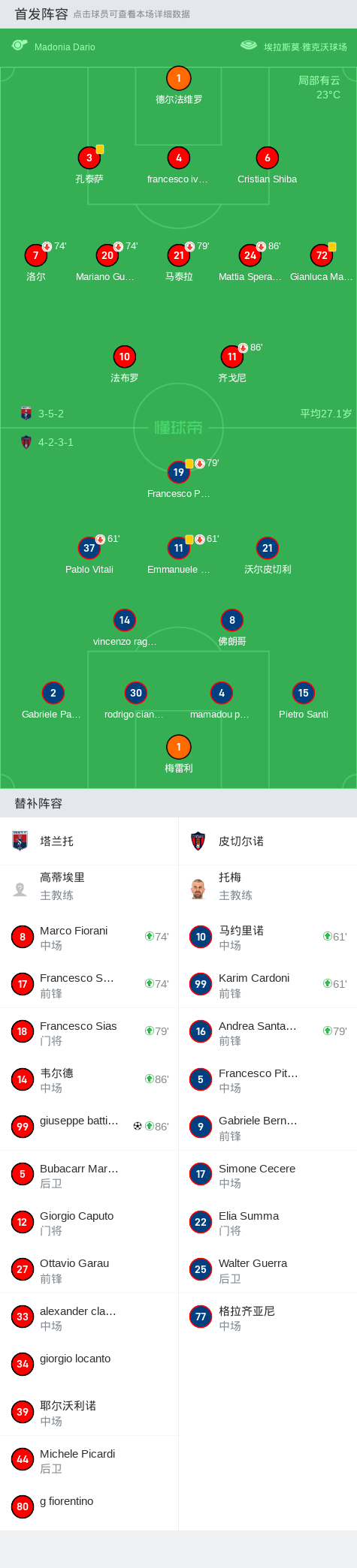 塔兰托1-0皮切尔诺,giuseppe battimelli一击制胜