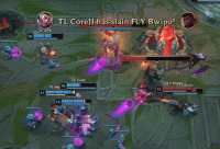 第13分钟,TL三人下路想杀Bwipo,FLY中野支援击杀Impact拆掉下路一塔,8-1。