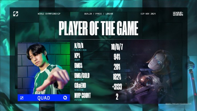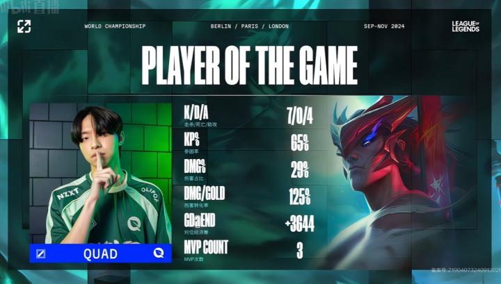 第19分钟,Inspired拉到UmTi,Quad收下人头,4-3。