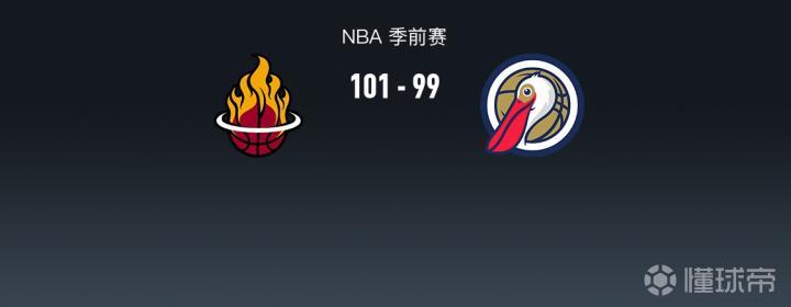 北京时间10月14日NBA 季前赛,迈阿密热火对阵新奥尔良鹈鹕。半场热火56-49鹈鹕,最终热火101-99鹈鹕。