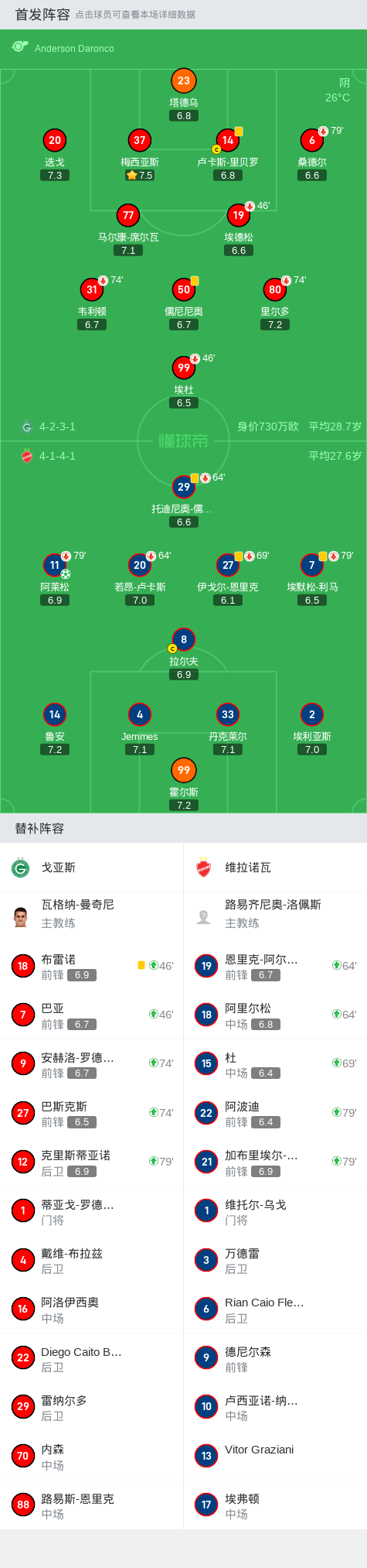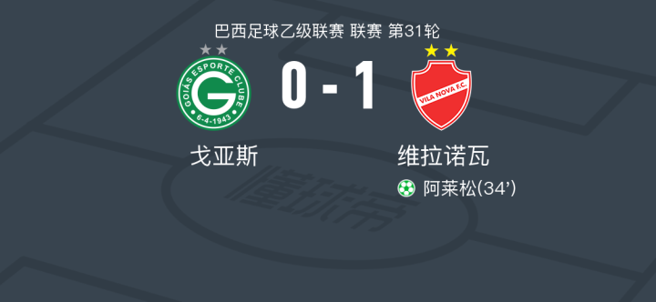 维拉诺瓦1-0戈亚斯,阿莱松点射制胜战报bot @懂球帝2024-10-14 07:37在巴西足球乙级联赛第31轮的较量中,戈亚斯坐镇主场迎战维拉诺瓦。比赛中,维拉诺瓦的阿莱松成功罚入点球,为球队取得领先。最终,维拉诺瓦以1比0小胜戈亚斯,客场全取三分。点击查看本场比赛详细数据>>点击查看巴乙完整积分榜>>精彩瞬间第34分钟,维拉诺瓦球员阿莱松罚入点球。 球队阵容 技术统计 展开更多