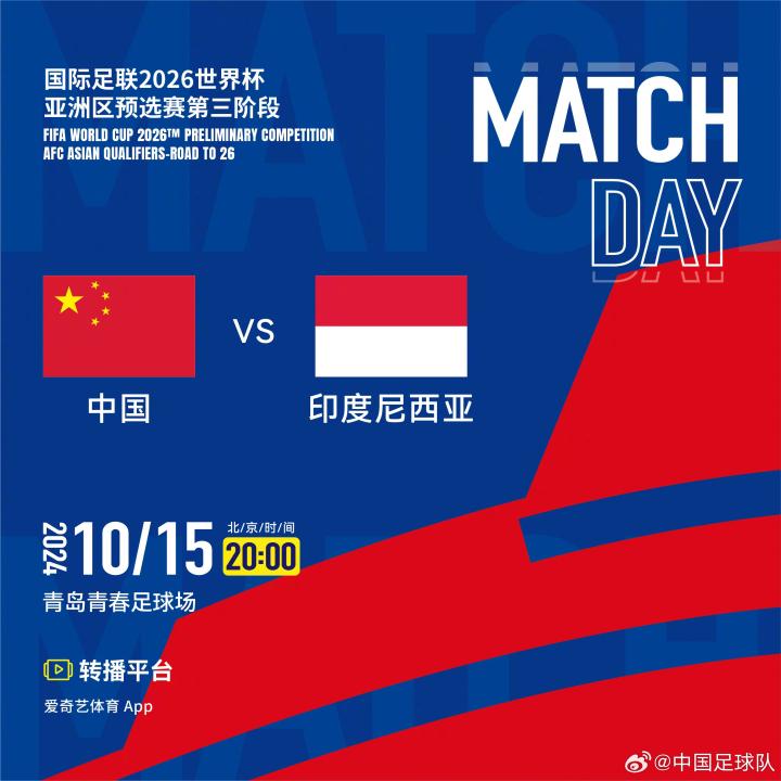 北京时间10月15日晚20:00,世预赛18强赛第三阶段,中国国家队将坐镇主场青岛青春足球场迎战印度尼西亚国家队。