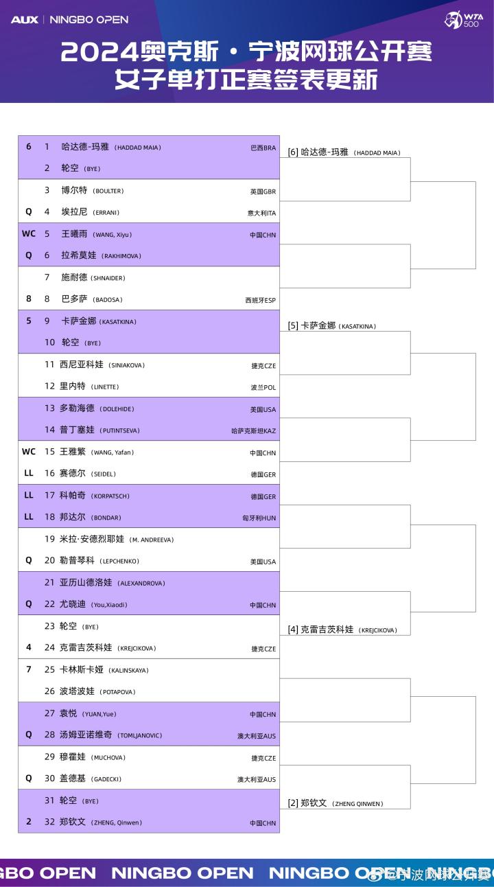 纳瓦罗和保利尼退赛,女单世界前十仅郑钦文和玛雅参加宁波站