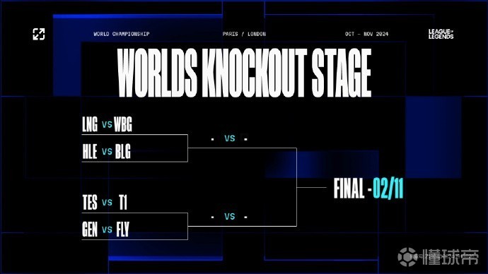 2024英雄联盟全球总决赛瑞士轮的比赛已经全部结束,淘汰赛八强的比赛抽签结果也正式出炉。上半区LNG内战WBG,HLE碰撞BLG。下半区则是TES对阵T1,GEN对阵FLY。