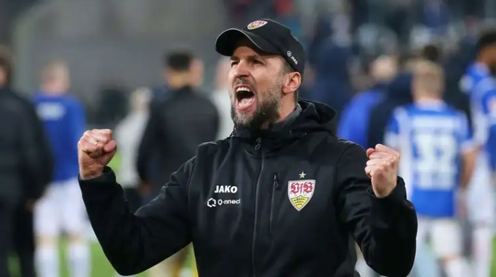 2023年愚人节,斯图加特0-3败走柏林,球队深陷降级区。球队管理层果断拨响了小赫内斯的电话,希望这位少帅能来救火,管理层的想法大概是姑且让他死马当活马医,如果真的降级,小赫内斯在霍芬海姆表现出的建队能力,或许能帮助球队不要沉沦德乙太久。