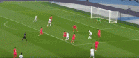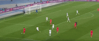 第38分钟,金玟哉冒顶,侯赛因门前头球顶偏