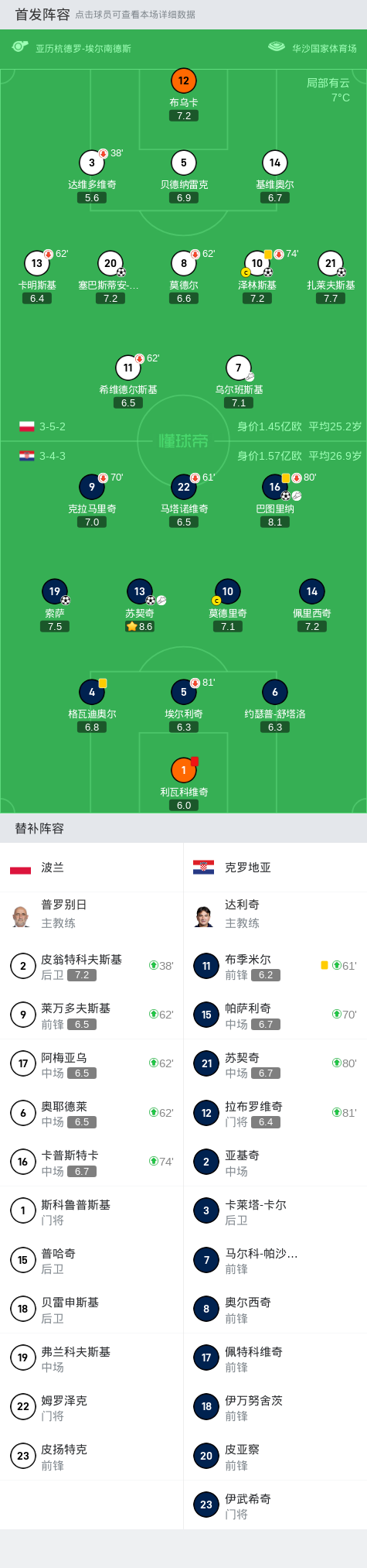 第62分钟,波兰连换三人,莱万、阿梅亚乌、奥耶德莱替补上场