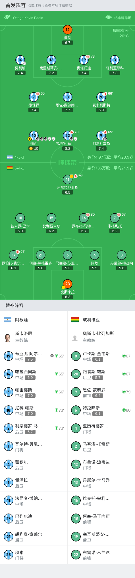 第19分钟,玻利维亚后场失误,劳塔罗断球后助攻梅西单刀破门