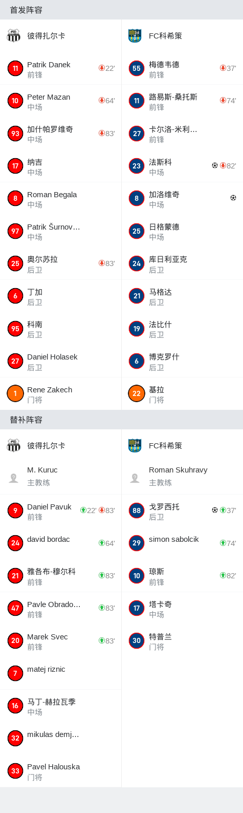 FC科希策3-0大胜彼得扎尔卡,加洛维奇、戈罗西托破门