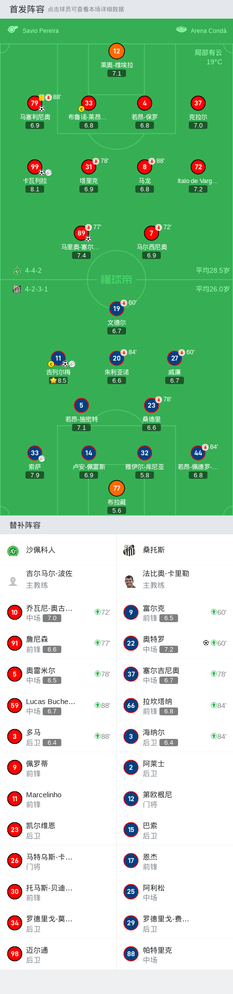 沙佩科人3-2逆转桑托斯,卡瓦列拉1射1传,马塞利尼奥建功